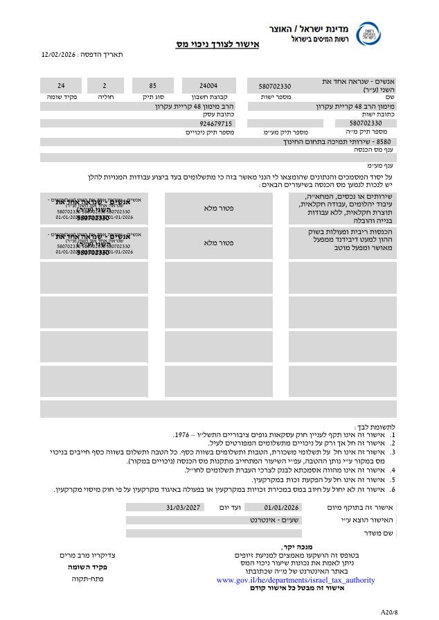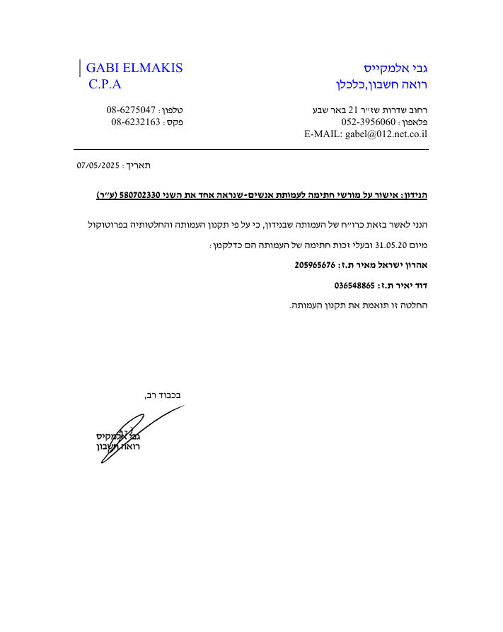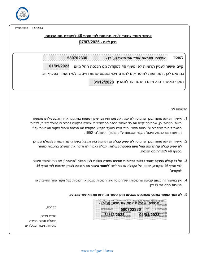 Документы организации - на официальном государственном сайте Израиля: